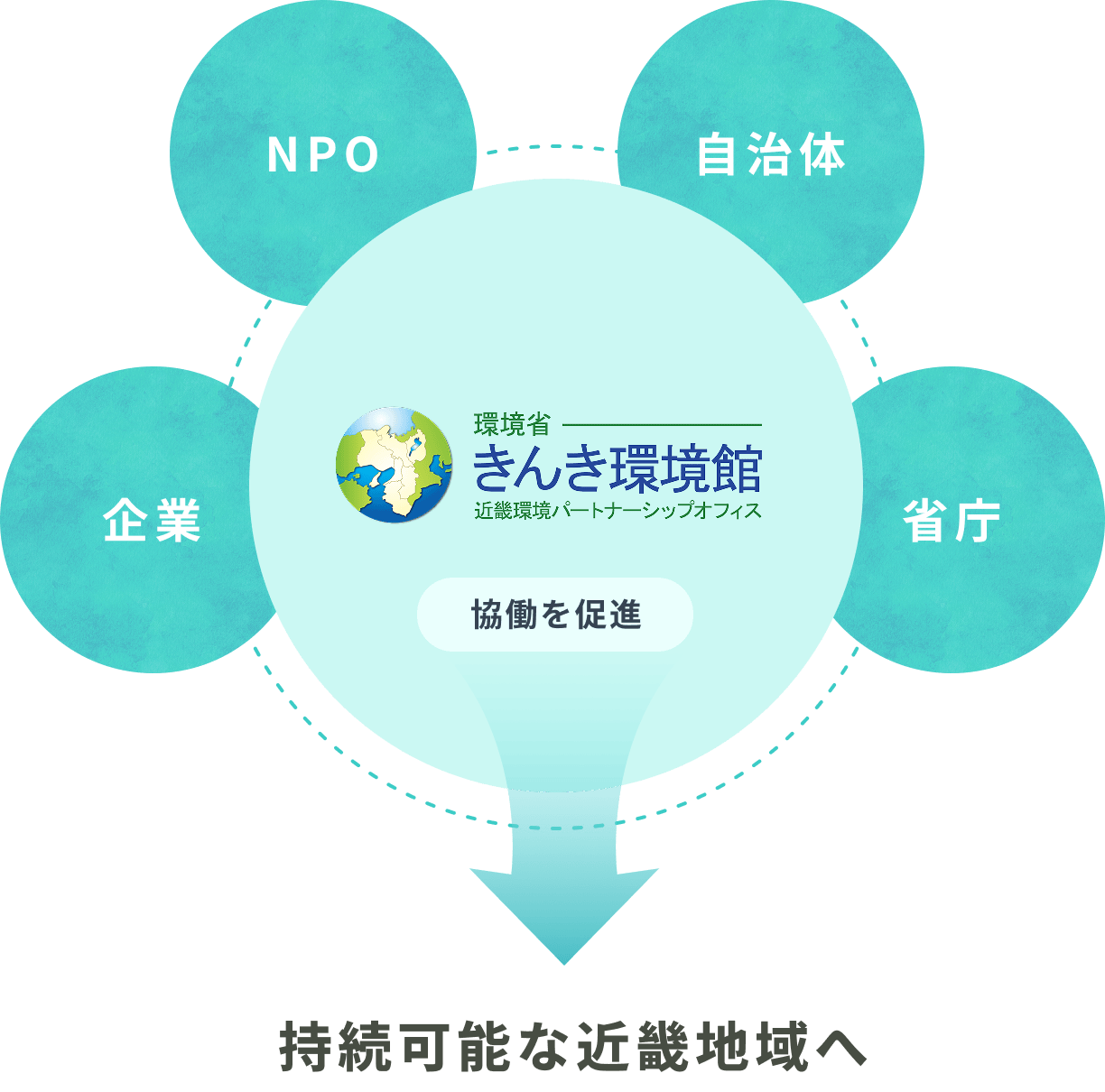 近畿地方で環境課題解決や地域活性化に取り組むNPO・企業・行政機関など多方面の活動をつなぎ、持続可能な地域づくりを加速させる協働の拠点です。環境分野に限らず、広くその実現に向けた情報発信、対話の場づくり、相談対応を行っています。