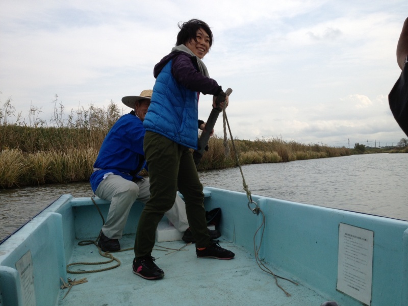 写真は昨年度、野洲市にある、「NPO法人家棟川流域観光船※」が提供するエコ遊覧船でのひとコマ。