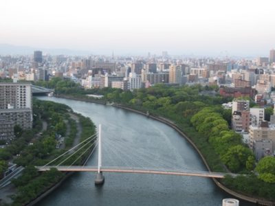 大川沿いは、葉桜の時期も過ぎて、すっかり新緑で彩られています。