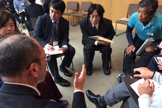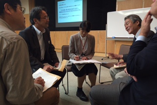 ワークショップでは、ESDの視点で様々な地域課題と自分たちとのかかわりについて、学習指導計画を基に様々な情報交換が行われました。一部のグループでは自治体職員の方も参加されていました。