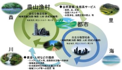 各地域が美しい自然景観等の地域資源を最大限活用しながら自立・分散型の社会を形成しつつ、地域の特性に応じて資源を補完し支え合うことにより、地域の活力が最大限に発揮されることを目指す考え方。