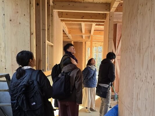 ![]() ※建設中のカフェ棟の見学の様子 |