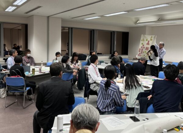 5つのグループにわかれて、ディスカッションを行いました。各グループには議員、プラスチックの資源循環に関心を持ち活動等をされている話題提供者に入ってもらい、その他は行政、議員、市民(企業、NPO、組合職員、教員、大学生など) 等をバランスよく分け、ファシリテーターが進行を行いました。